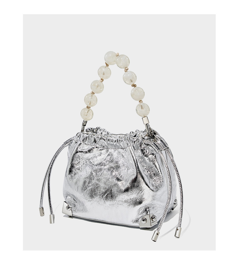 Genuine Leather European and American Large Capacity Handbag Silver