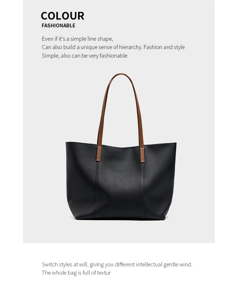 Genuine Leather Women Large Casual Handbag Black