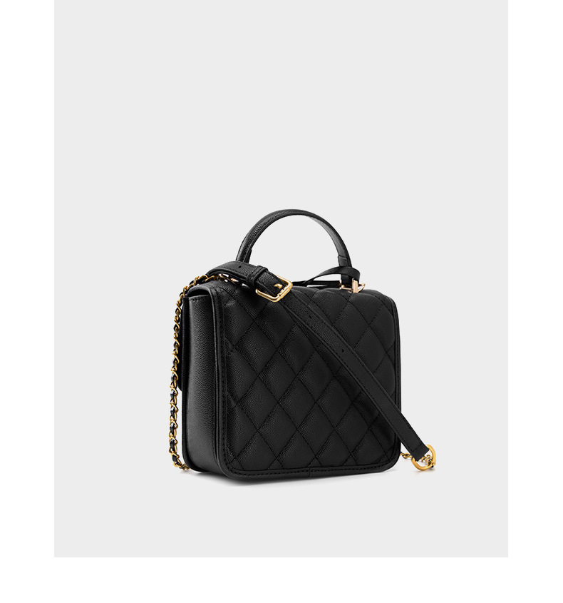 Genuine Leather Crossbody Bags for Women Trendy Ladies Shoulder Purse Satchel HandBag with Chain Strap Black